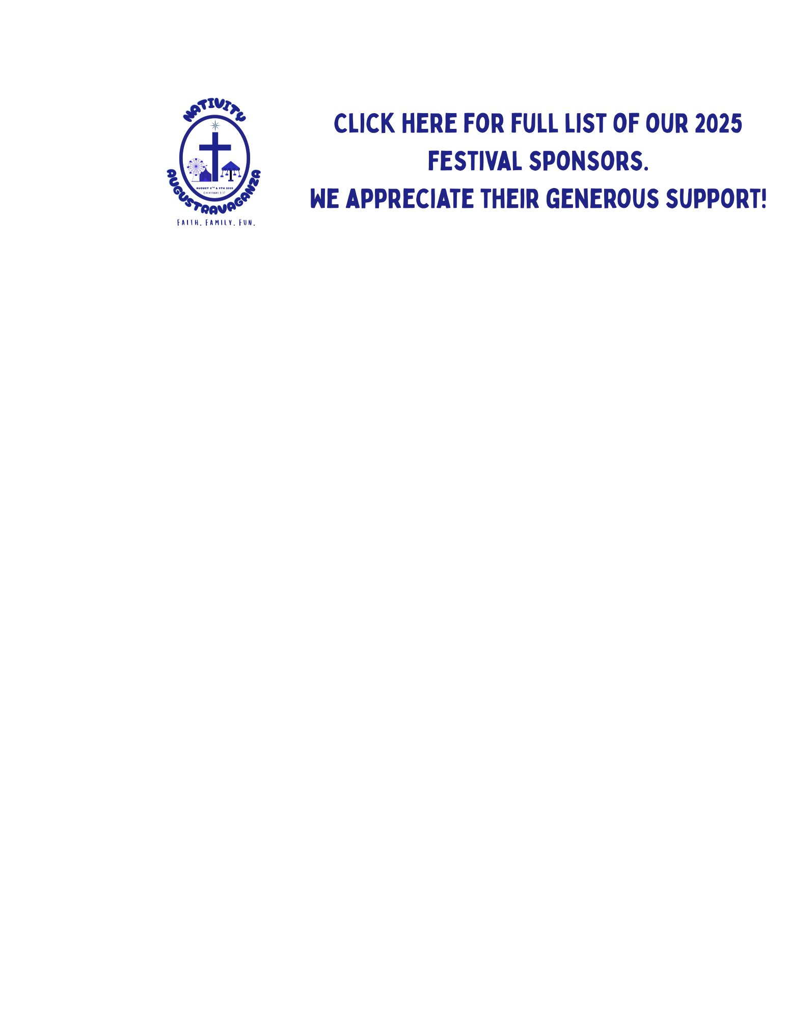 Below is information on our various sponsorship levels. We have some new sponsorships and some of the perks have changed. Please note a few of our benefits are limited to one business. Of note, our event banner hangs outside during the festival, and after the festival, it is hung in our gym all year! We sell about 400 t-shirts per year. In order to meet printing deadlines, eligible businesses need to commit to sponsorship by June 1, 2025 in order to be on t-shirts, raffle tickets, food & game tickets (aka Nativity Bucks), our event banner, and printed material distributed to all parishioners (900 families). QUESTIONS? Contact Laura Lanie at [email protected]